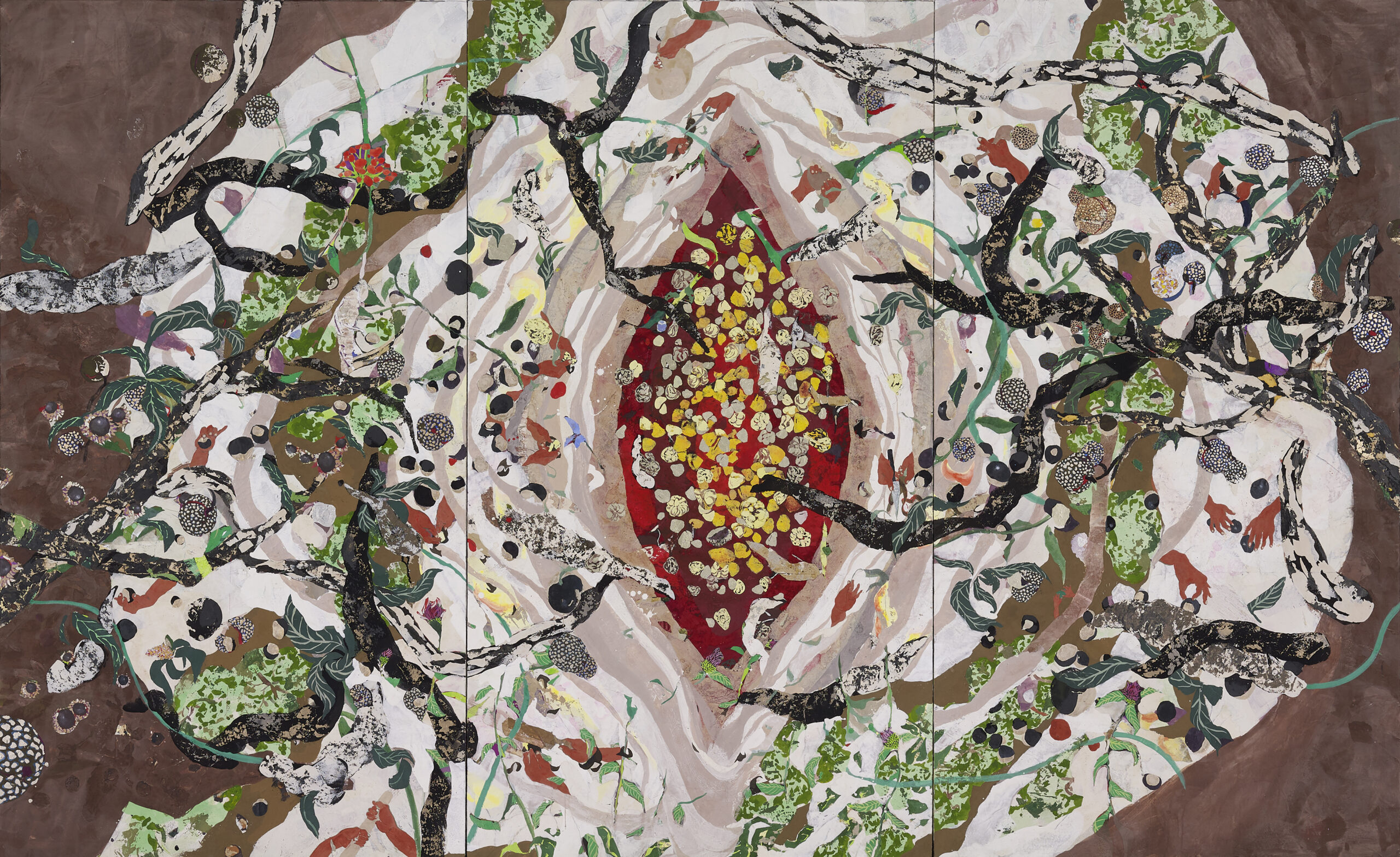 浅野友理子《綯い交ぜの庭》2021年 油彩・岩絵具・水干絵具、パネルに和紙 170×324cm 撮影:嵯峨倫寛