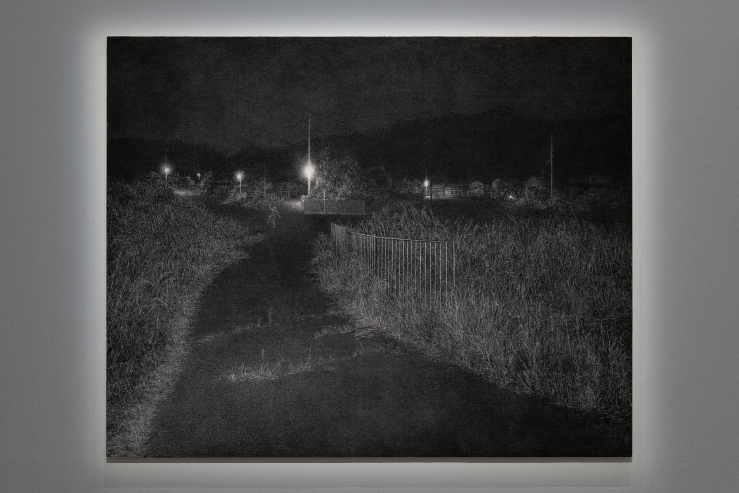 大東忍《不寝の夜》2025年 木炭、キャンバス 181.8×227.3cm 資生堂ギャラリー「第18回shiseido art egg」展示風景 撮影:加藤健